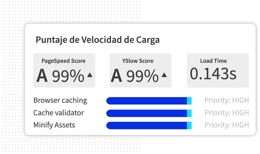 No dejes a tus clientes esperando a que cargue tu sitio web. Muéstrales contenido dedicado al instante y posiciónate más arriba en los resultados de búsqueda.